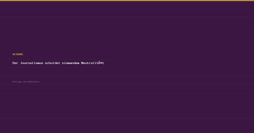 Es ist eines der hartneckigsten Missverstaendnisse unserer Zeit: die Forderung nach journalistischer Neutralitaet. Doch Journalismus war nie neutral — und sollte es auch nicht sein.